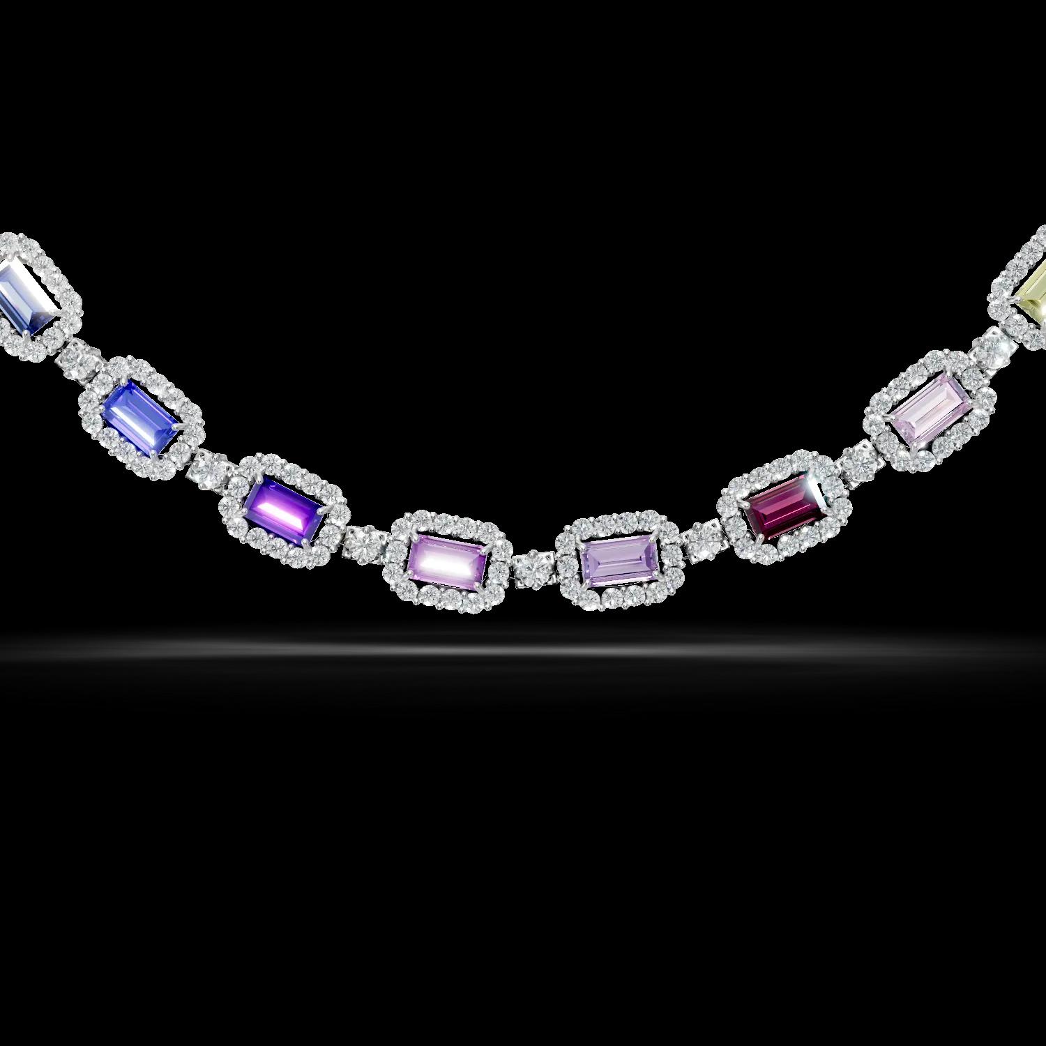 Platinum necklace with 17.4ct multicolored sapphires and diamonds